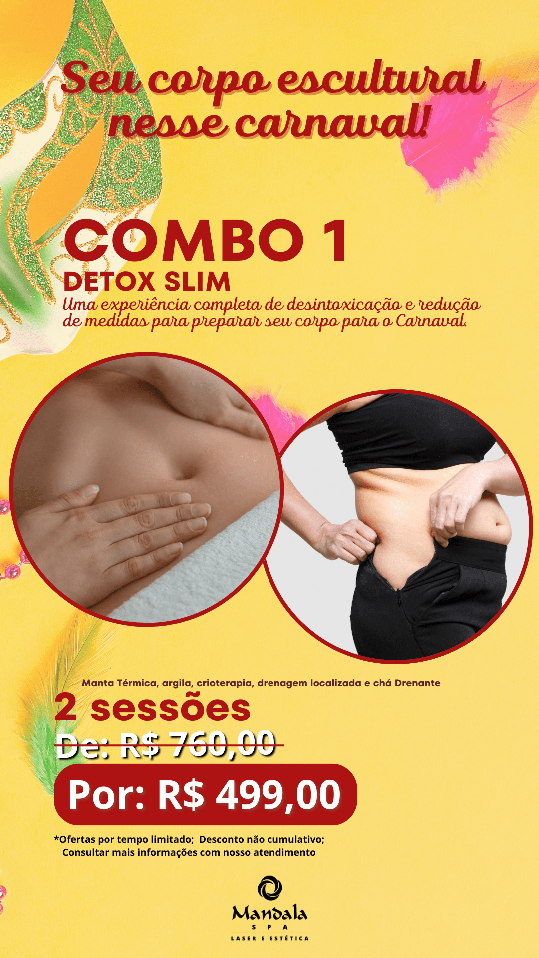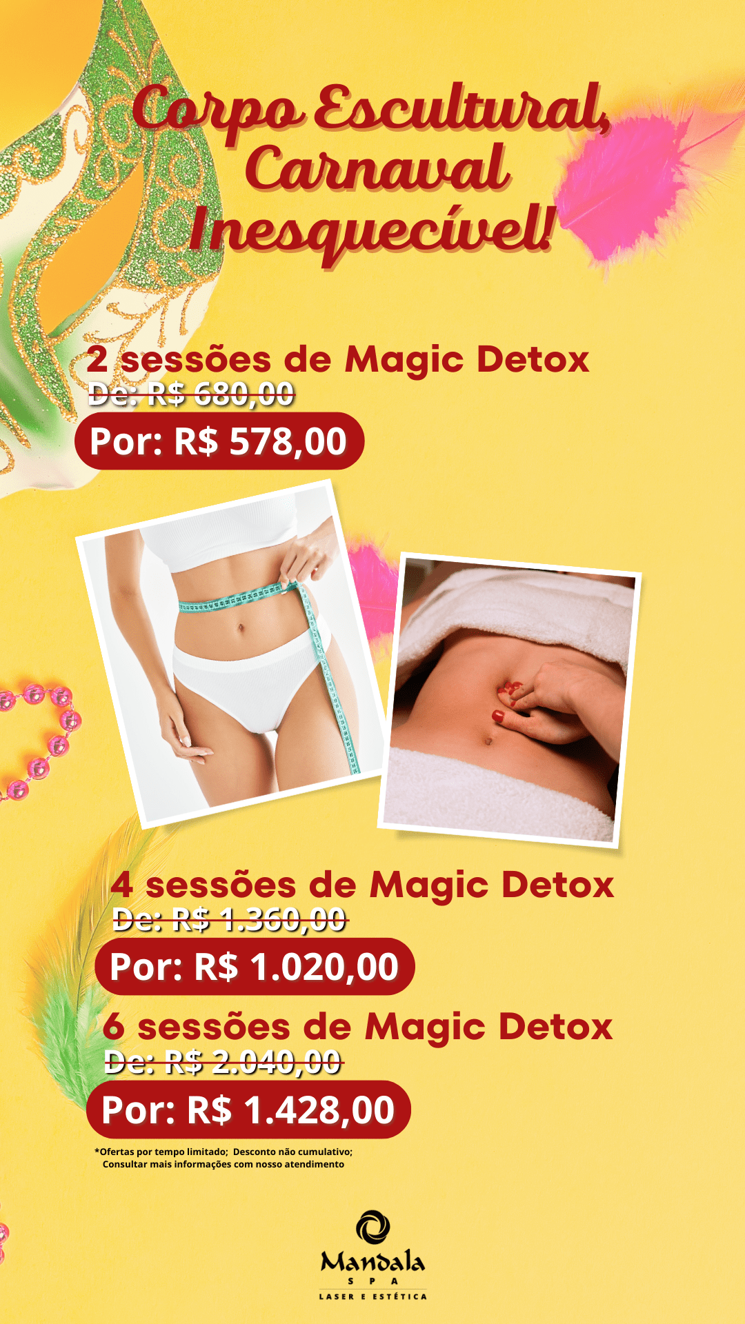 Perceba mudanças incríveis no seu corpo! Um protocolo de desintoxicação corporal completo, realizado em 2 sessões estéticas